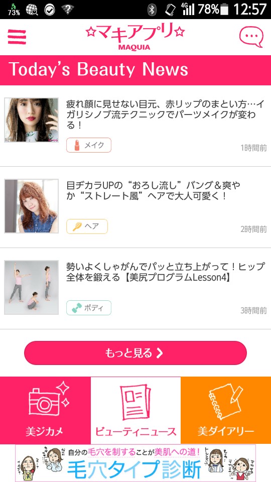 「マキアプリ」は美容雑誌「MAQUIA」の美容アプリでスキンケア、メイクアップ、ヘアースタイル、ネイルなど美容に関する旬なビューティーニュースや、生理日や体重などの体調管理もできるダイヤリーがあり、女性に役立つ情報が掲載されているアプリです。写真加工機能もあるので手軽に美人に変身できてしまいます。写真の美人加工だけではなく、本当の意味での美肌美人が目指せるあなたの強い味方でいてくれる、そんなアプリなんです。