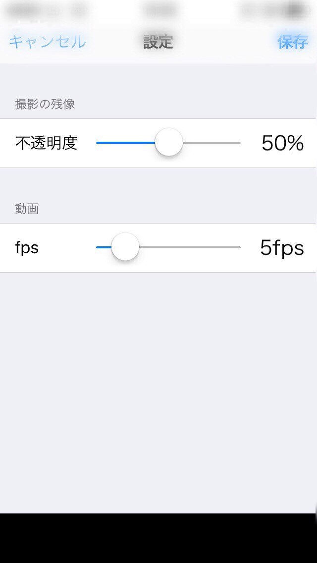 この残像は不透明度を調整できるので、残像撮影機能が無い方が使いやすいという方は不透明度を薄くしたり、OFFにすることも可能です。