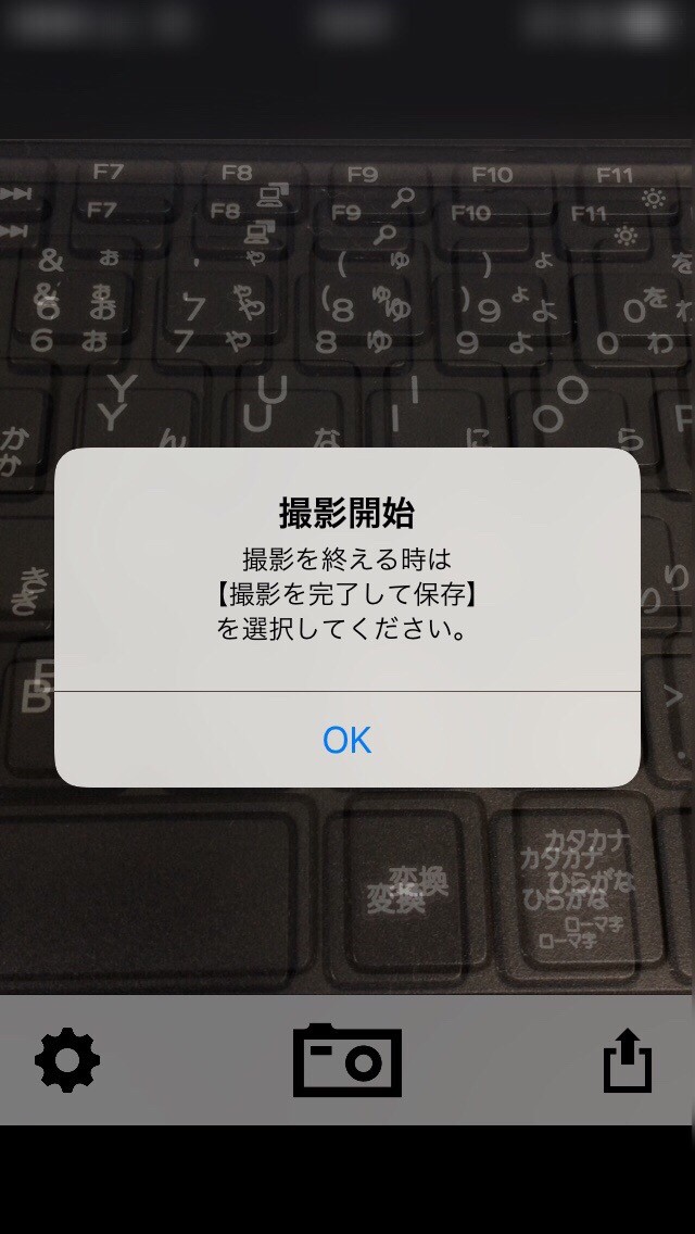 「俺のコマ撮り」を起動すると早速カメラ機能が立ち上がり、撮影開始です。