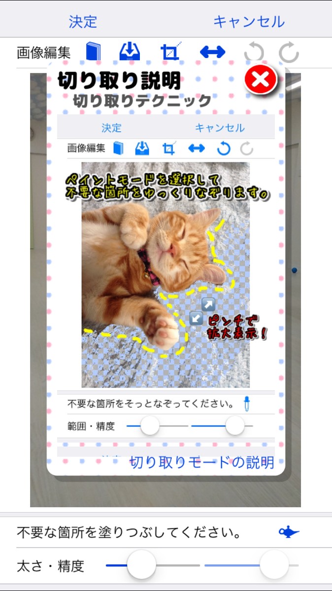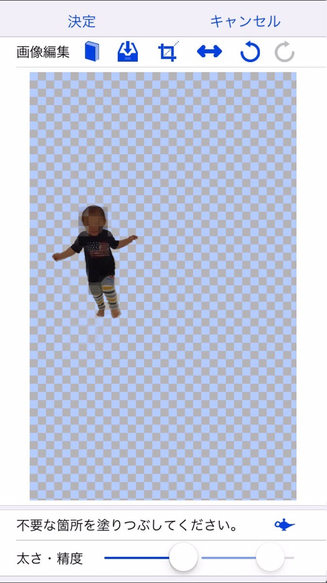 別の写真から画像を切り抜き合成することも簡単です。拡大して切り抜き作業ができるので、かなり細かく切り抜けます。