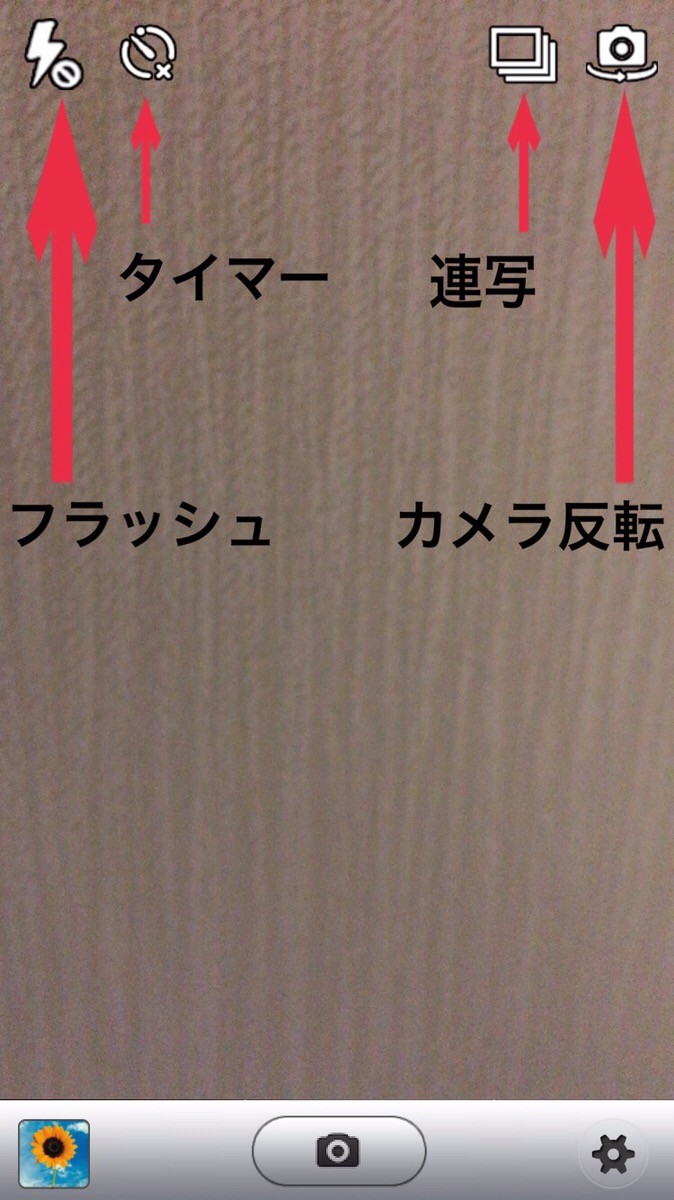 フラッシュサポート・タイマー・連写・カメラ反転機能