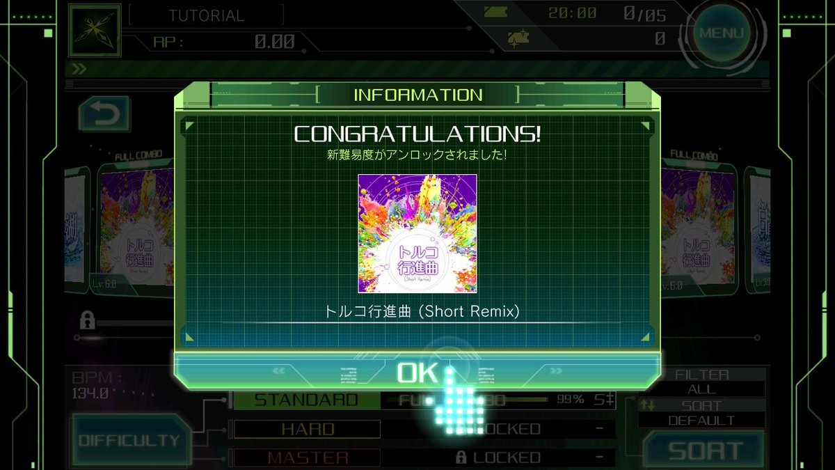 アンロックチャレンジのノルマに成功して必要な数のピースを集めたら、ロックされていた譜面が解禁されて常に遊べるようになります。ですので、毎回のチャレンジは絶対に落としたくないところ!