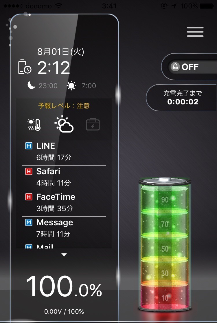「電池予報 RealTime 2 - バッテリー充電と寿命管理」あと何分通話できる?電池残量と使用限度がすぐわかる便利アプリ