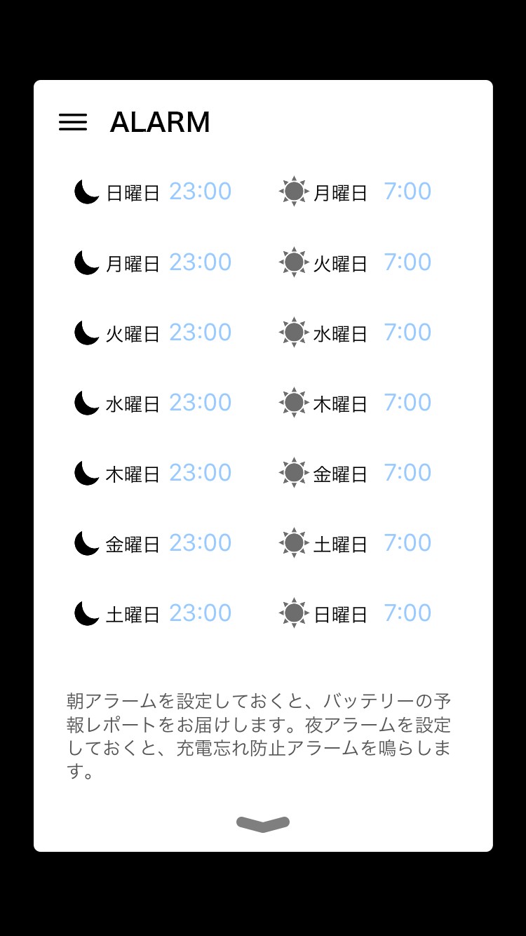 まず開いてみて驚くのが、オシャレなデザイン。失礼ながら、ただ電池予報をするだけのアプリとは思えないほどの綺麗さがあります。