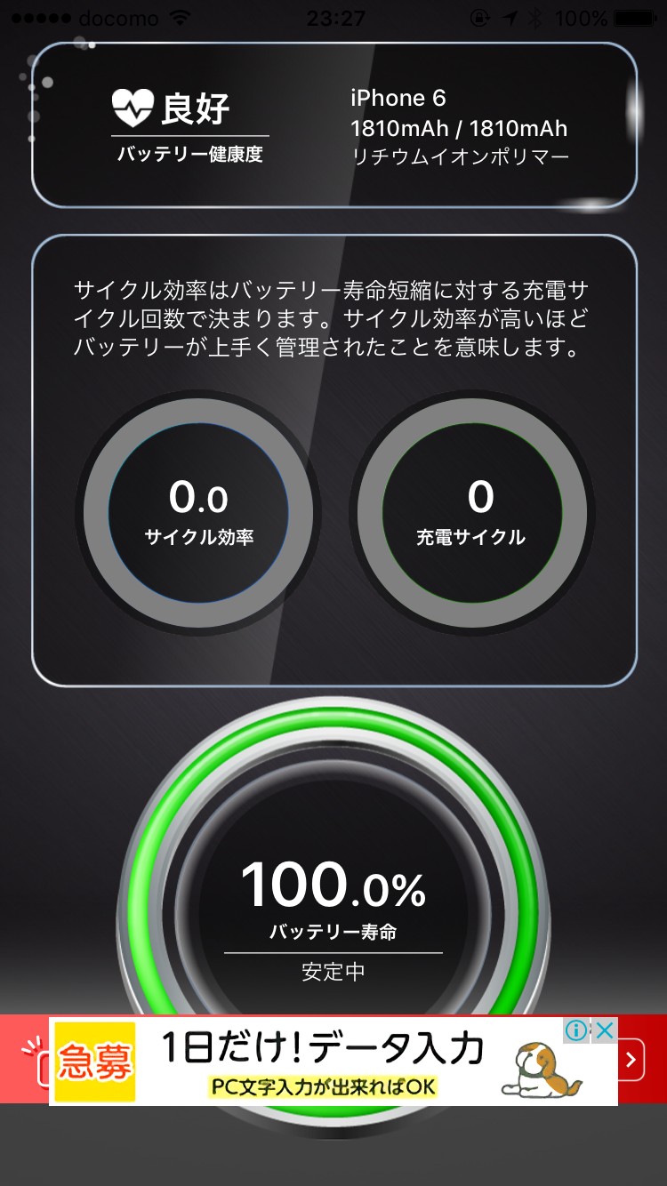 実際に「電池予報 RealTime 2 - バッテリー充電と寿命管理」を開いてみてみましょう。
