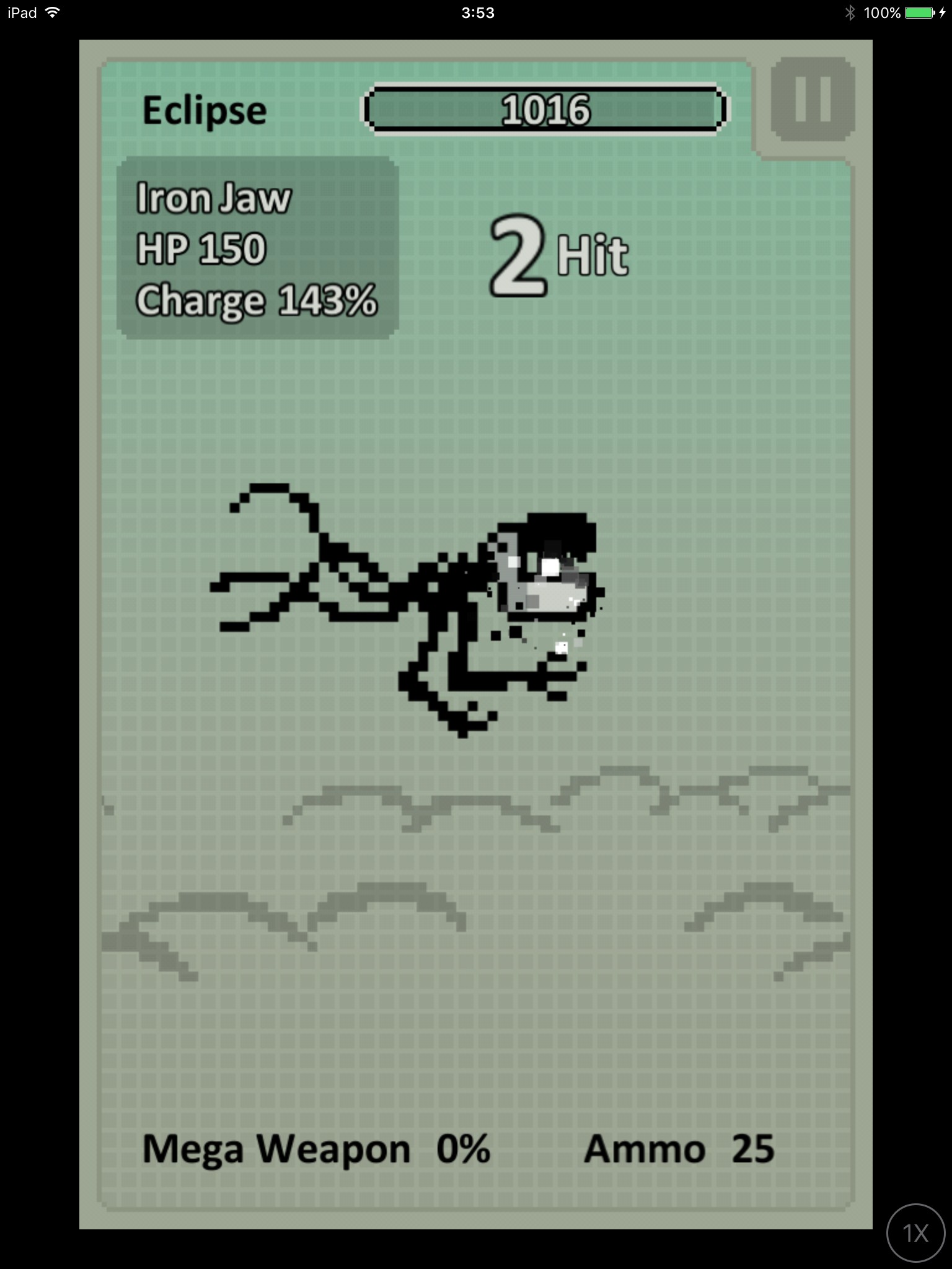 砲撃をするか、ダメージを受けるかのどちらかで「Mega Weapon」の%がたまっていき、100になると強力なレーザービームを発射できます。そのときにゲージの表示が切り替わるので、