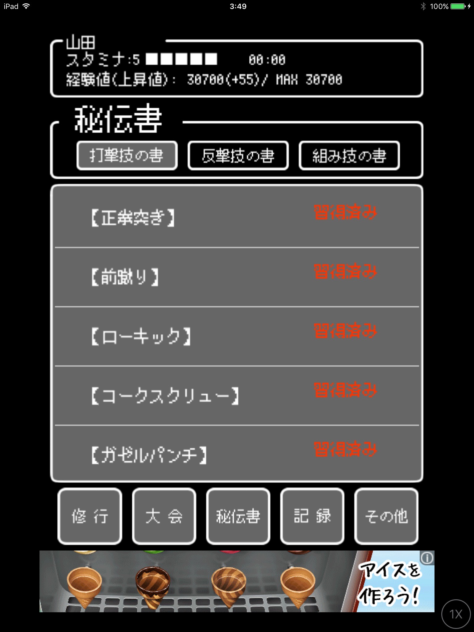 応援するとたまりが早くなるには違いないですが、指を酷使しすぎないようお気をつけください。たまった経験値は秘伝書で技を取得するために使います。