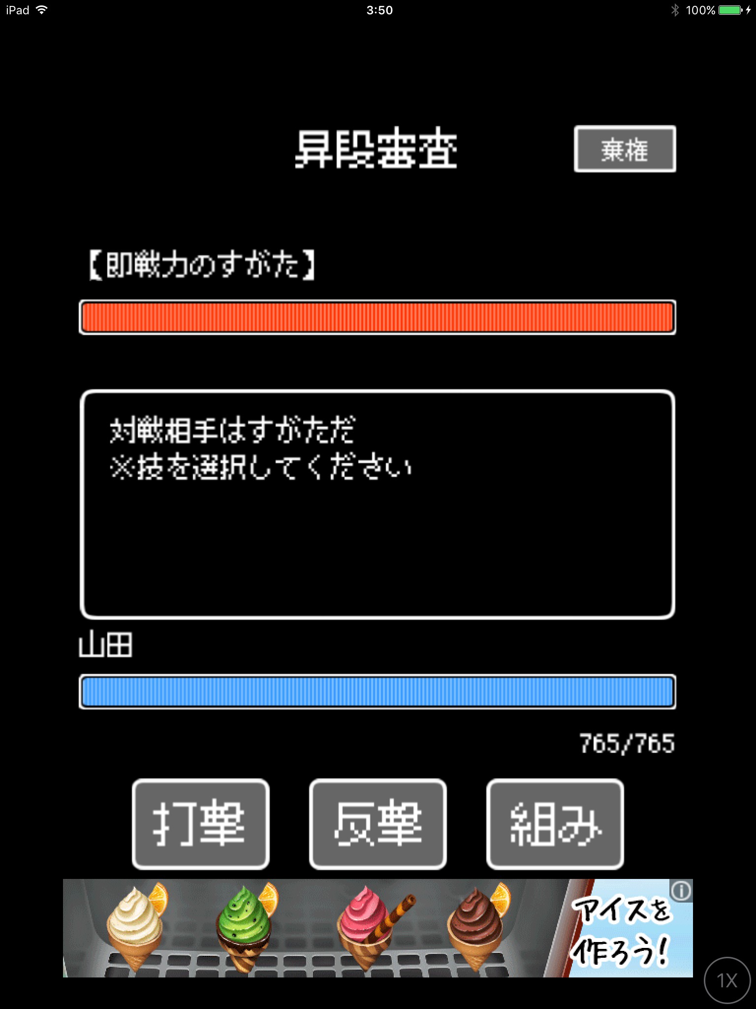 相性の良い技を繰り返し相手のHPを0にしたら勝ちのルールです。しかしご安心ください。序盤の対戦相手はチュートリアル的な存在でして、