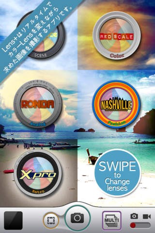 1度に6つの情景が楽しめるアプリ「Lens+」は今までのカメラアプリと違って、フィルター加工を後からせずに初めから確認できる優れものです。