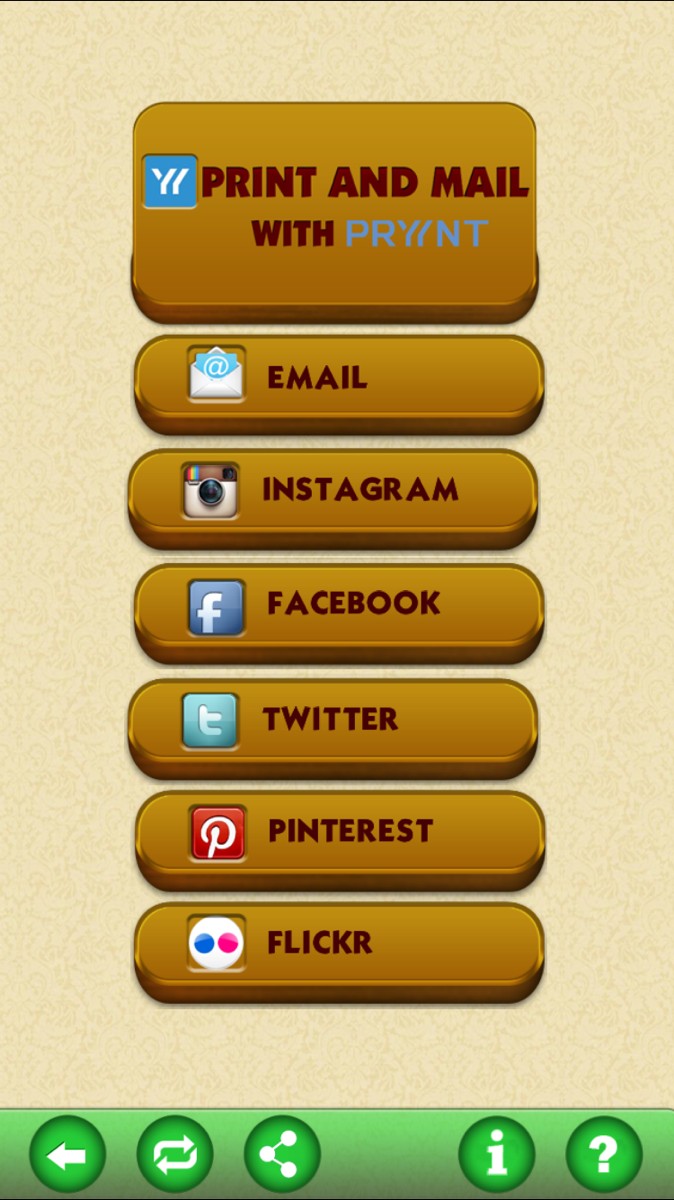 4.作成が完了すると、メール、Instagram、PINTEREST、Facebook、Twitter、flickerのSNSの送信先が表示されるので投稿したい場合は選択。投稿しない場合は左矢印を選択すると戻ります。