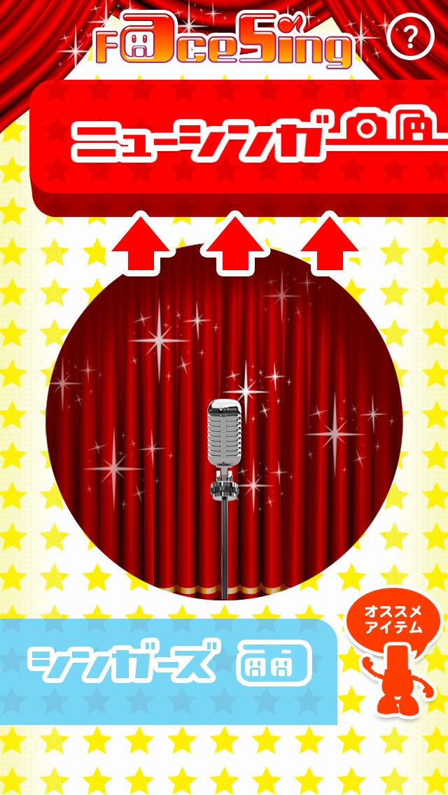 画面下部中央の三角ボタンをタップすると、設定した顔写真のシンガーがその歌を歌いだしますよ!