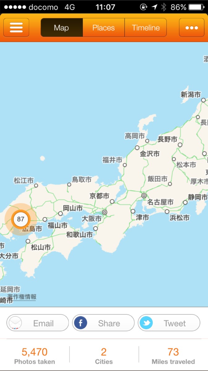 カメラロール内の写真をまとめて読み込んでくれるので、「あそこで撮った写真、どこにあるかな」というときにはこのアプリから探し出す方が時間や手間もかかりません。旅行好きの人は、訪れたことのある場所を写真が表示してくれるので思い出を整理するのにも最適です。素敵な写真はポストカードとして加工してみましょう。