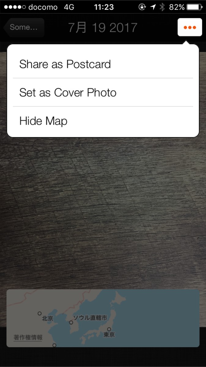 6.ポストカードとして加工したいときは、右上の丸印が3つ並んでいるアイコンをタップして「Share as Postcard」を選ぶ
