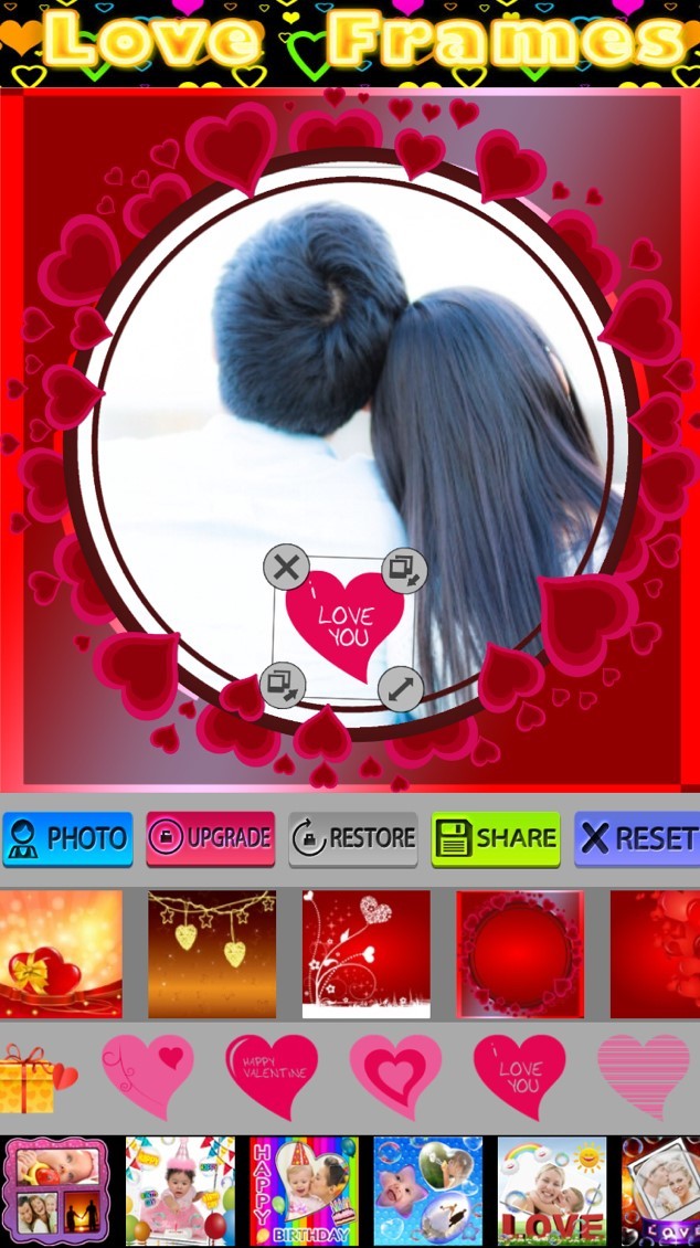 無料版では11個のフレームと42個のスタンプを自由に組み合わせて写真を加工することができます。有料版では7か国語で表示された「愛しています」のスタンプなど、さらに様々なフレームやスタンプで写真加工を楽しむことが可能です。