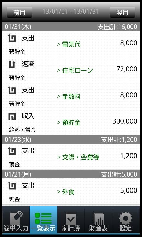 締め日を設定することで毎月の収支を簡単に計算し、収支や支払いだけでなくマイホームや自動車などの資産も管理できます。