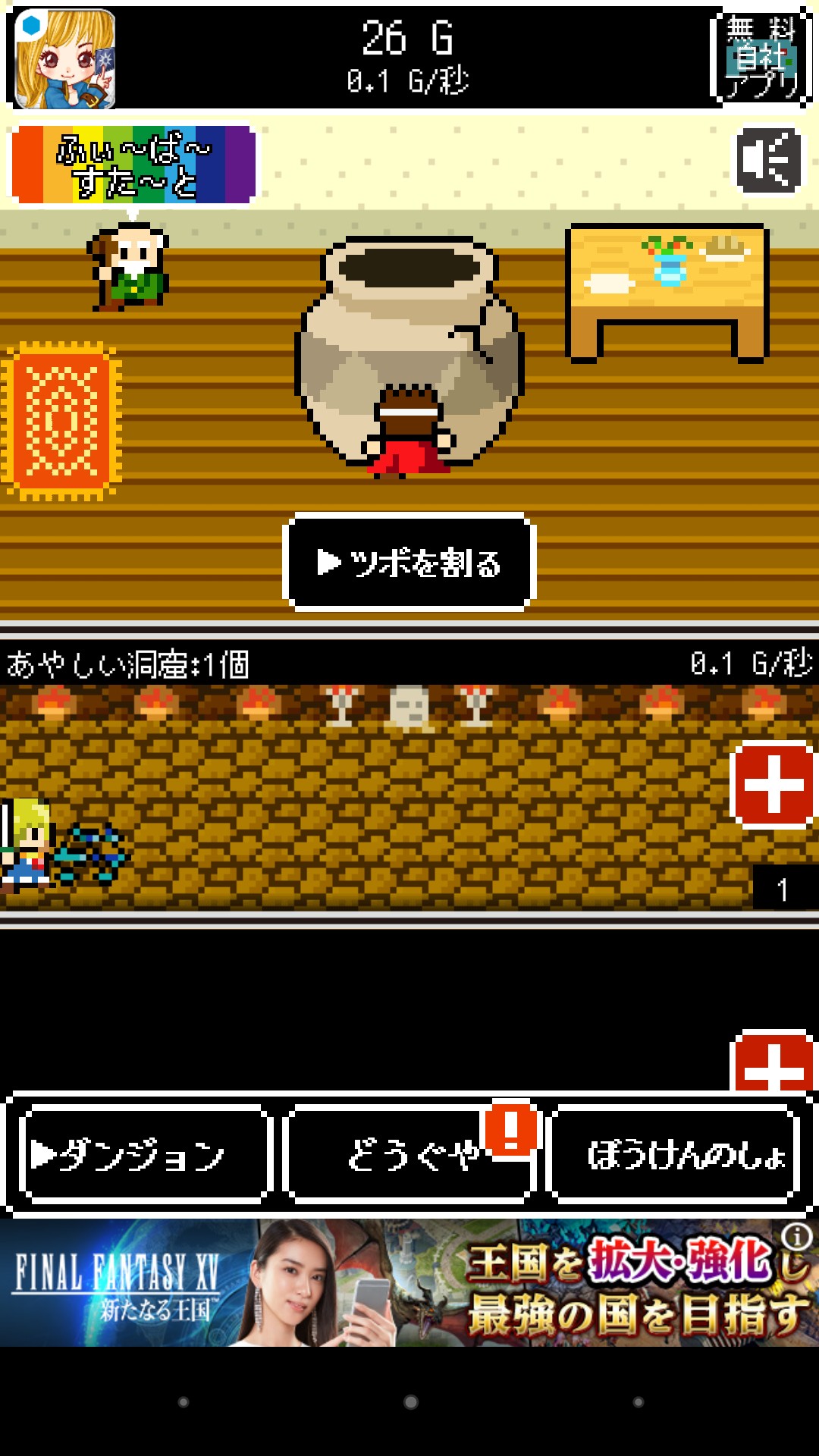 ツボがあるダンジョンには自然に勇者が集まってきてツボをどんどん割っていってくれるため、プレイヤーは村人の家にあるツボを割るだけです。