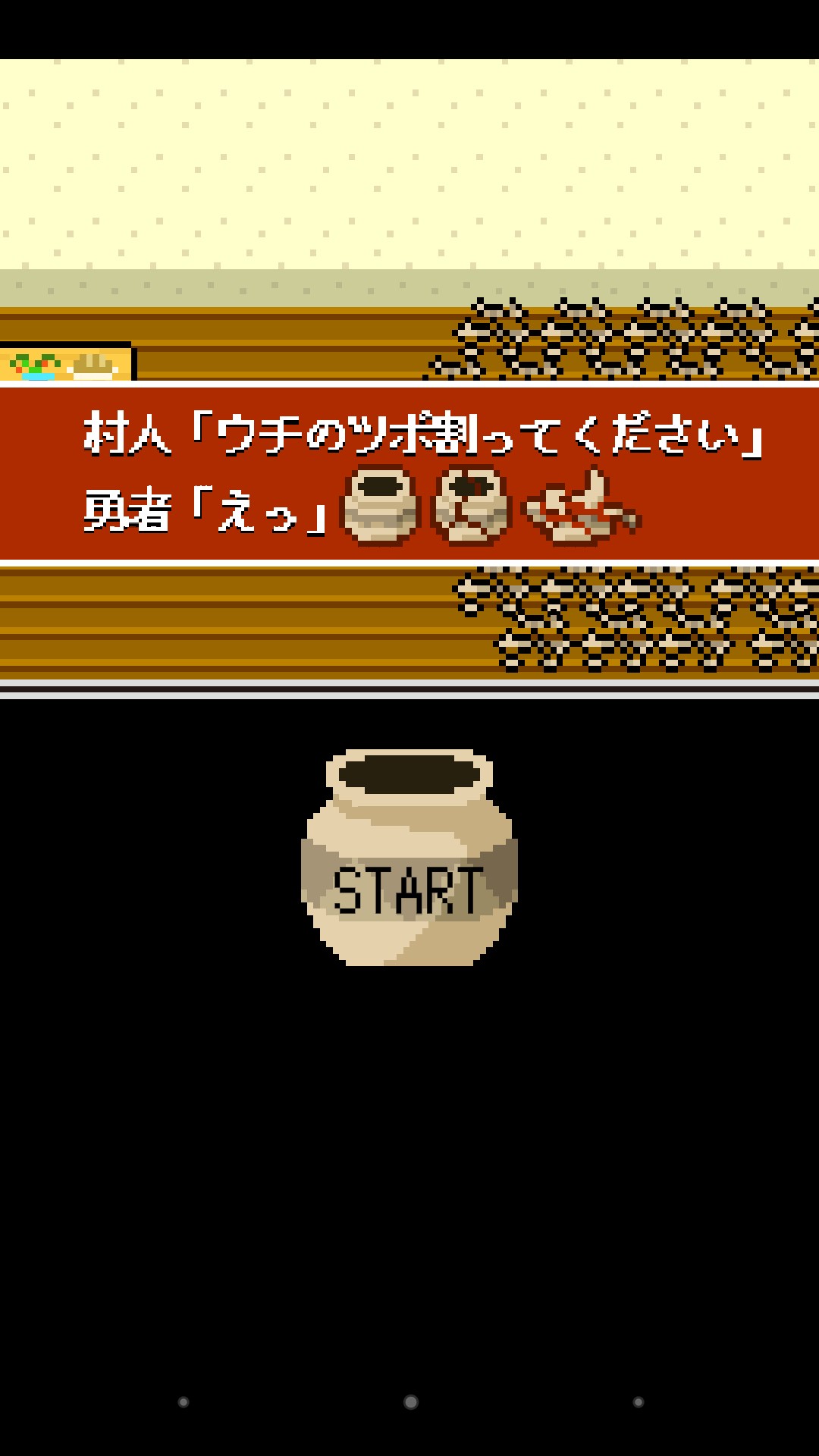 「とうこそいらっしゃいました勇者様、さあツボを割ってください」