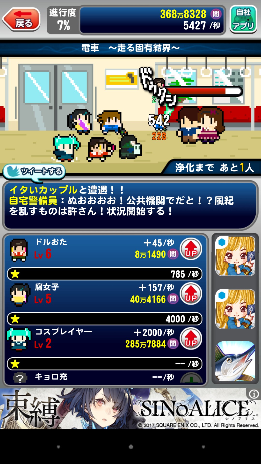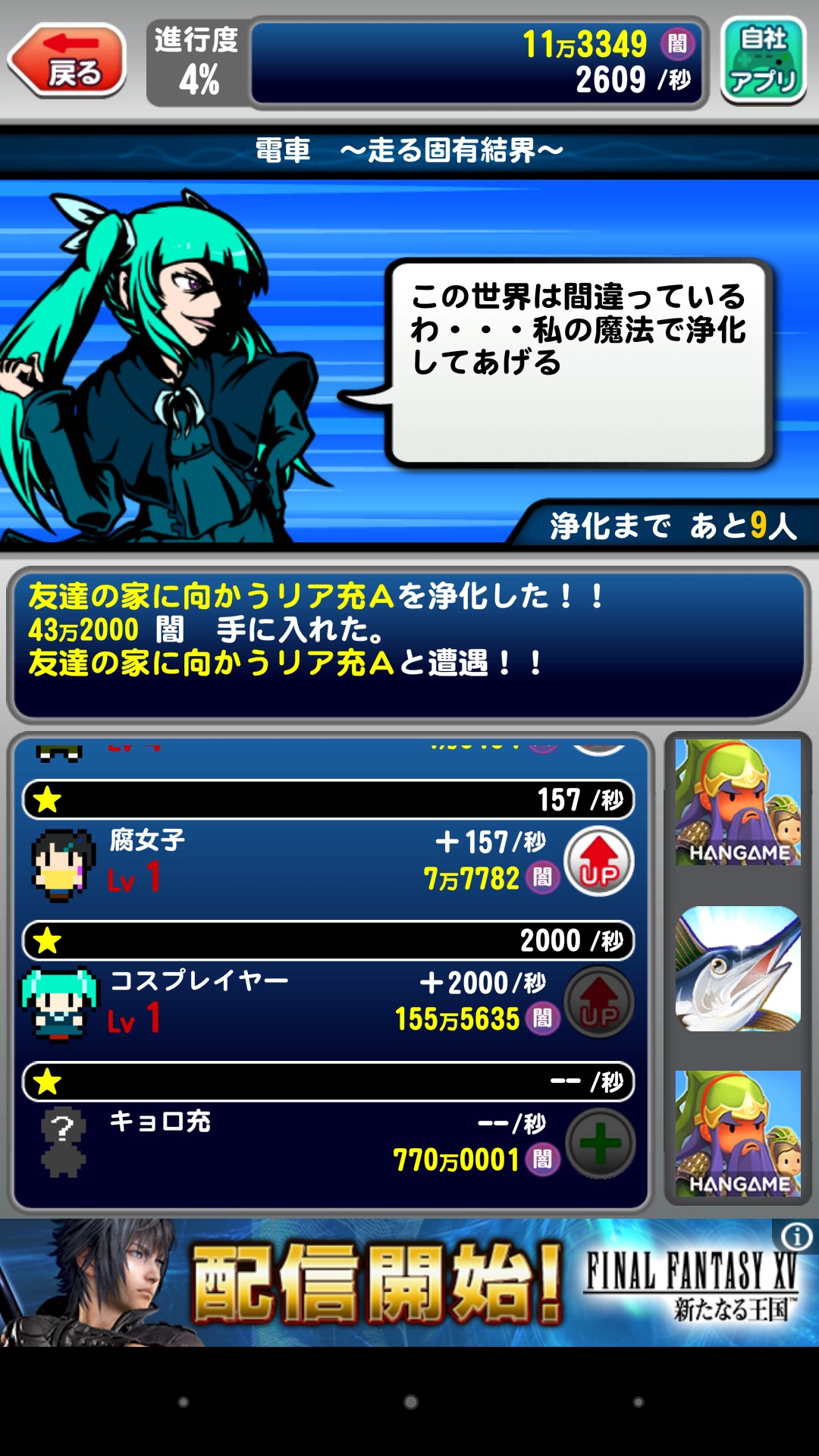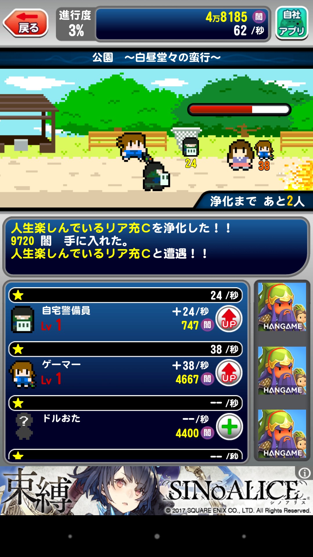 一方的にリア充を攻撃していく放置系RPG「非リアの冒険」の攻撃力のインフラが凄いことになる面白いゲームアプリです!