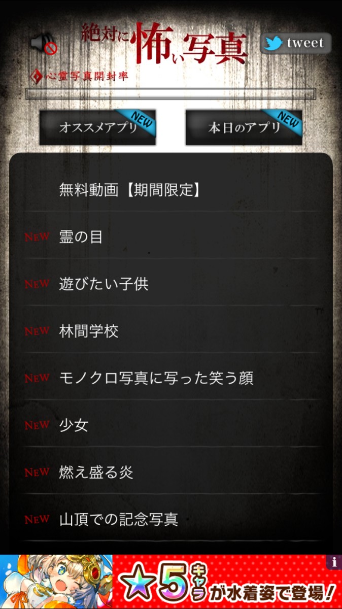 ・写真を閲覧するたびにタイトル一覧の上にある「心霊写真閲覧率」があがっていく