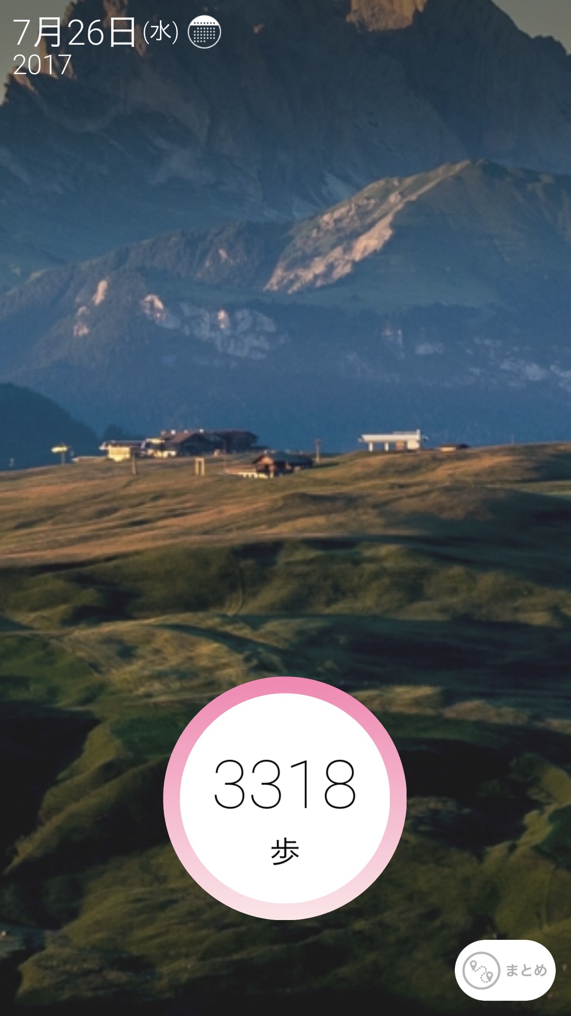 設定画面から「背景を固定」を選ぶとお好きな写真を表示画面の背景写真として使うことが出来ます。写真はスマホのカメラロールから10枚まで写真を選択することが可能です。背景写真の設定がない場合は、その日撮った写真が背景写真として使われます。また、写真を撮っていない日の背景写真はデフォルト写真が自動で表示されます。