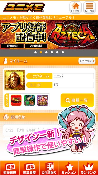 豊富なコンテンツで、インストールしてあるパチンコ・スロットアプリを盛り上げてくれる「ユニメモ」では、ミッションやミニゲームなどお楽しみ要素がいっぱいです。