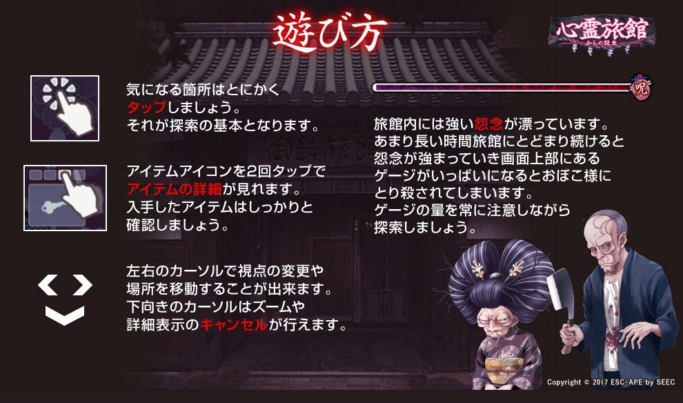 恐怖に抗い、旅館の隅から隅まで調べつくし攻略を目指しましょう!