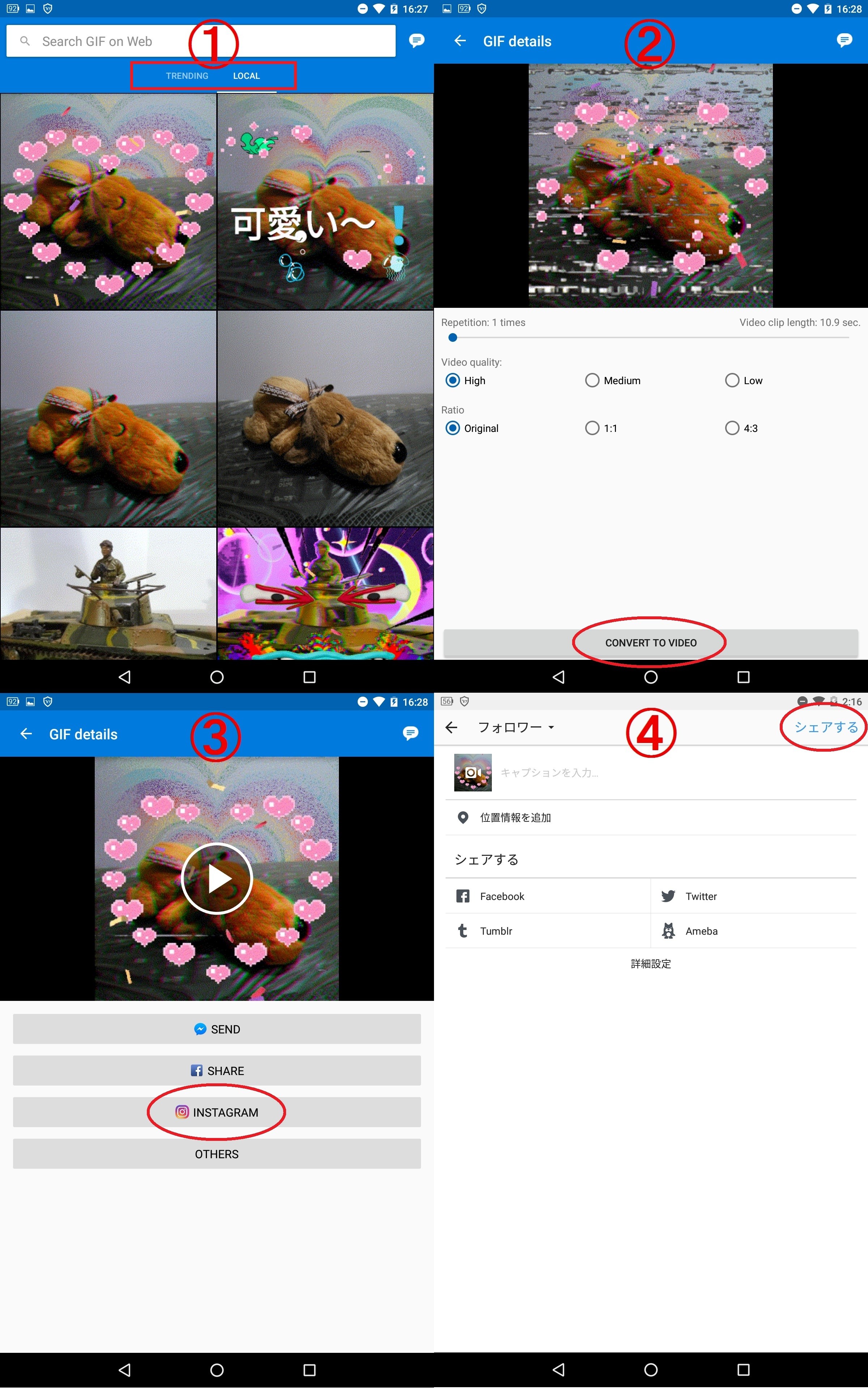 「GifShare」でGIF動画をインスタグラムに投稿しよう
