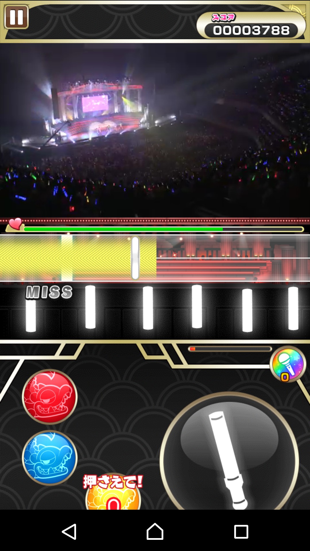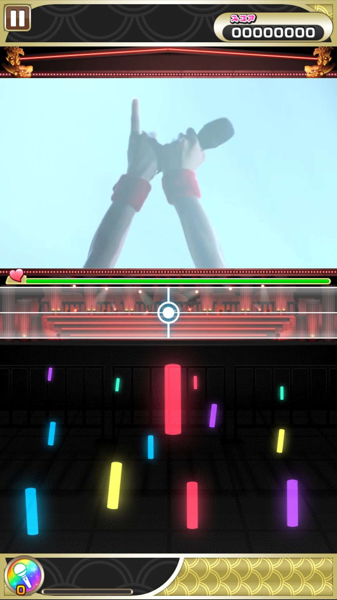 「しゃちほこ~る」では、本格的なリズムアクションゲームが楽しめる「リズムゲーム」と、ライブでおなじみの「コール」(掛け声や合いの手など)を簡単操作で楽しめる「ライブゲーム」の2種類のゲームがプレイできます。上の画像は「colors」の「リズムゲーム」の画面です。