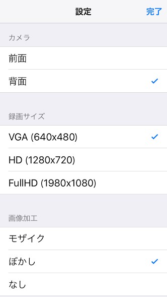 「匿名カメラ」自分の顔や声に加工をすることができる