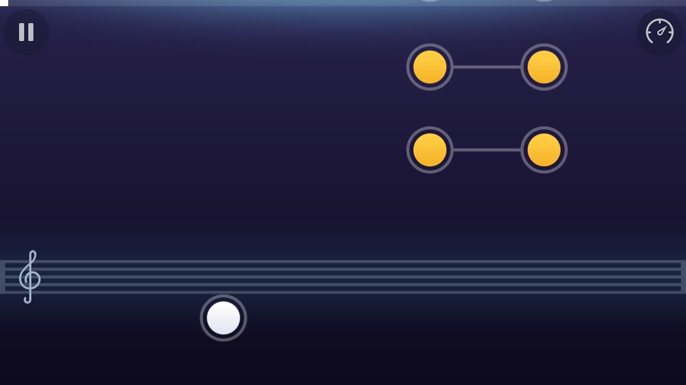 五線譜が表示されて、上から丸い玉の様な音符が落ちてきます。音符と五線譜が交わったベストなタイミングで画面をタッチするというゲームです。ベストなタイミングだと、水色、速いと紫、遅い・失敗は赤で表示されます。