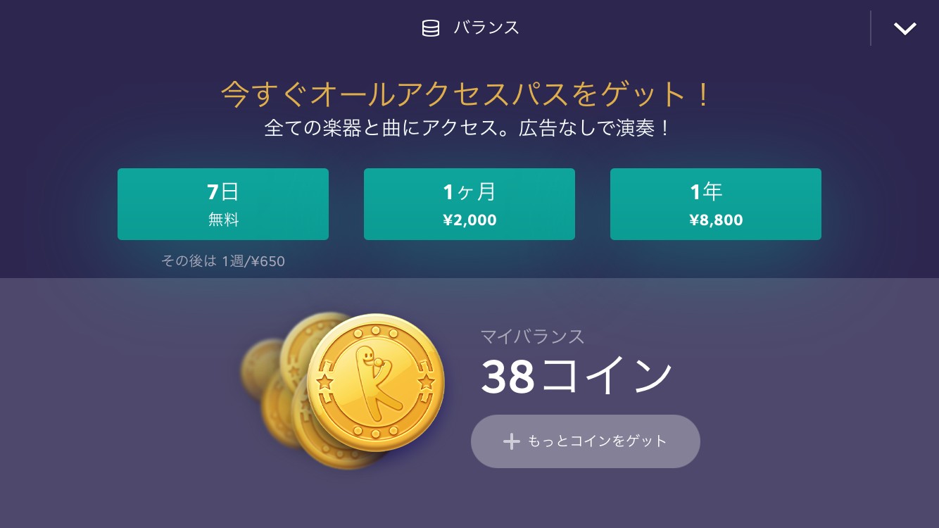 曲の右端に【無料】と表示されていれば、プレイ可能です。曲の右端に【100】とコインマークがある場合は、コインが必要になります。コインは、ゲームを進めていくと手に入ったりします。また、コインなど関係なく遊ぶには、オールアクセスパスを入手する必要があります。最初の7日間は無料ですが、その後、1週間ごとに¥650かかります。お得に遊ぶには、1ヶ月¥2000、1年¥8800というプランもありますよ。もちろん無料でも、充分に遊べます。