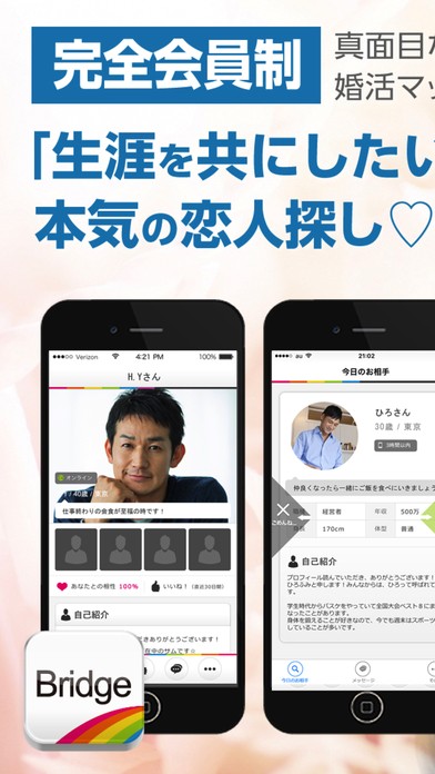 引用元:https://itunes.apple.com/jp/app/%E3%82%B2%E3%82%A4%E3%81%AE%E7%9C%9F%E9%9D%A2%E7%9B%AE%E3%81%AA%E5%87%BA%E4%BC%9A%E3%81%84-%E6%81%8B%E6%84%9B-%E5%A9%9A%E6%B4%BB%E3%83%9E%E3%83%83%E3%83%81%E3%83%B3%E3%82%B0%E3%82%A2%E3%83%97%E3%83%AAbridge-%E3%83%96%E3%83%AA%E3%83%83%E3%82%B8/id1073023067