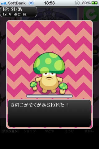 「ダンジョン」では、ランダムでモンスターが現れます。これも運まかせなので、運が悪いとすぐに超強いボスモンスター登場ということもありえます。「ショップ」では、アイテムを手に入れることができます。どんなアイテムが出てくるのかもガチャ任せで運まかせです。旅立ってすぐに最強装備…なんてこともあるかもしれませんね。「やどや」では、休んで回復することができます。しかし、やどやもガチャ任せです。与えられる部屋がランダムでみすぼらしい部屋になることもあるので、回復したいのに回復できないこともあります。