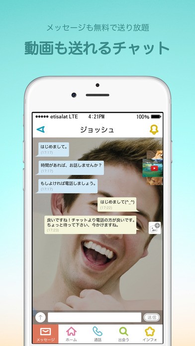 好みの人と離れていても、テレビ電話機能でお互い顔を見合わせながら会話ができるので、文字だけでは伝わらない思いを伝えることができます。
