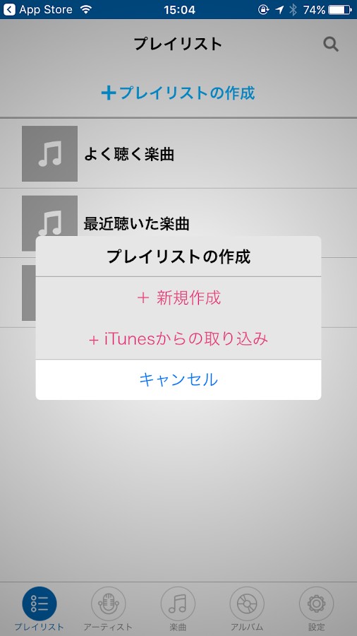 iTunesで管理しているプレイリストを取り込むこともできるので、手軽にお気に入りの曲を集めたオリジナルのプレイリストが作成できます。