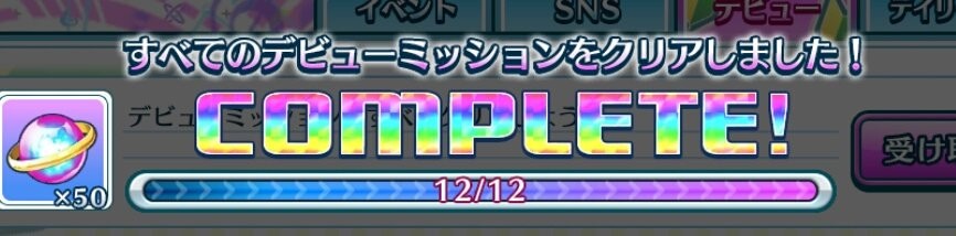 | 13 | デビューミッション達成 | 歌晶石 50個 |