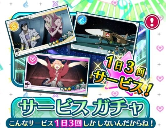 サービスガチャとは「朝」「昼」「夜」と歌晶石なしでも引けるガチャで開催時間が三回に分かれています。