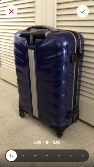 画面の上の方に赤いバツマークと緑のチェックマークが表示されています。左側にあるバツマークをタップすると撮った画像を削除するか、または後で編集できるように一時保存されます。後で編集するを選択すると左下に数字が表示され一時保存されている数を表します。緑のチェックマークをタップするとすぐに動画が保存されます。