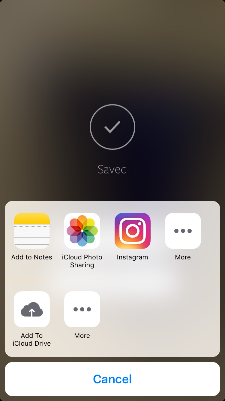 保存ができたらインスタグラムにシェアするボタンをタップすると、インスタグラムをはじめFacebookやTwitterにすぐに投稿できるようになります。
