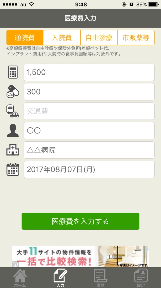 「Smart医療費」項目を選んで金額入力するだけで簡単に医療費管理!