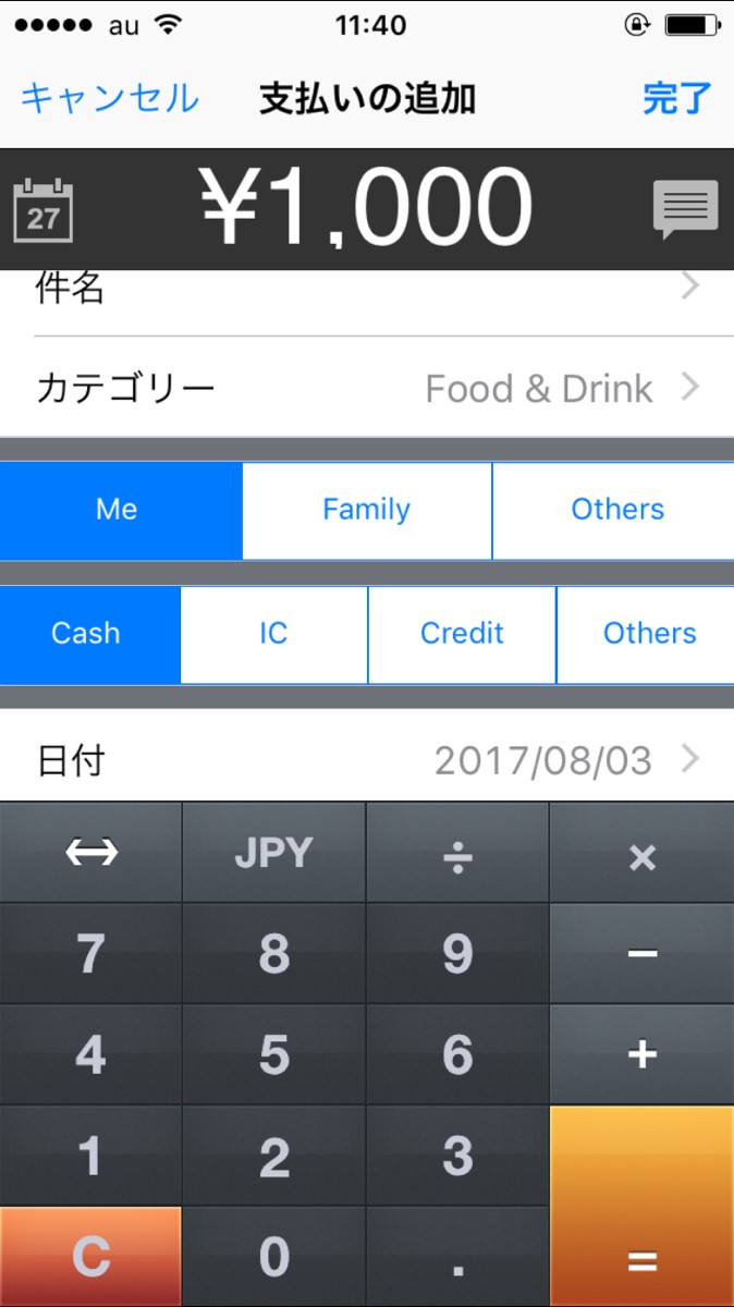 支払い方法も「現金」「クレジットカード」「ICカード」「その他」など細かく分けられ、いろいろな目的や支払い方法に対応できるので管理をするうえでも非常に便利です。
