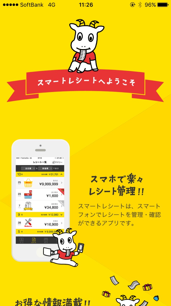 このアプリはレシート管理がスマートになるアプリです。主に、レシートの管理、買い物金額の費用別に集計、クーポンが届くといった機能があります。