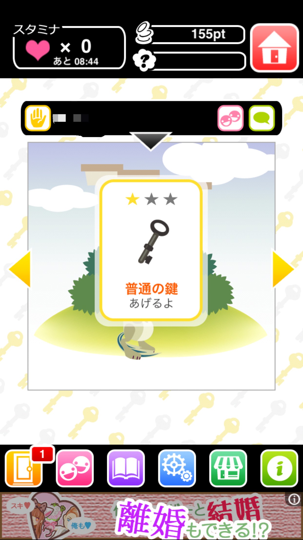 ピケをイジると、このようにピケから鍵をもらうことができる場合があります。このように画面を左にスワイプしていき、どんどんピケをイジっていきましょう!