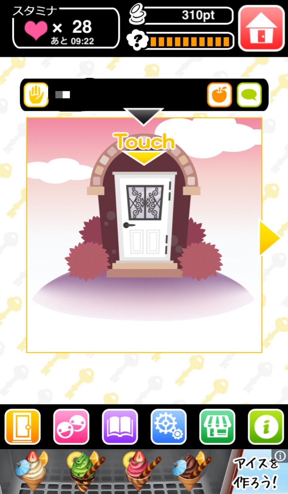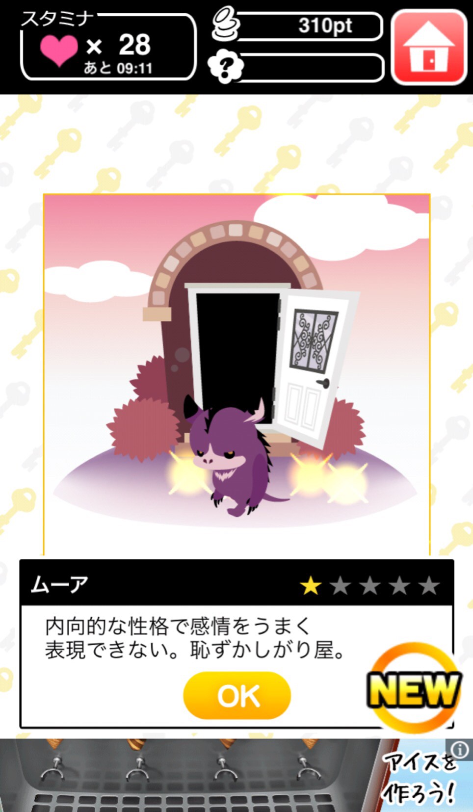 このゲームアプリでは、ドアを開くと不思議な生物、ドアの精「ピケ」が登場します。このピケと一緒に他のピケをイジって、コインやドアを開けるための「鍵」を集めていきます。