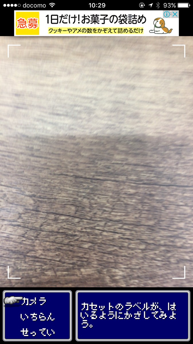 3.左下の「カメラ」のアイコンを選び、ファミコン専用カートリッジのラベルを読み込む