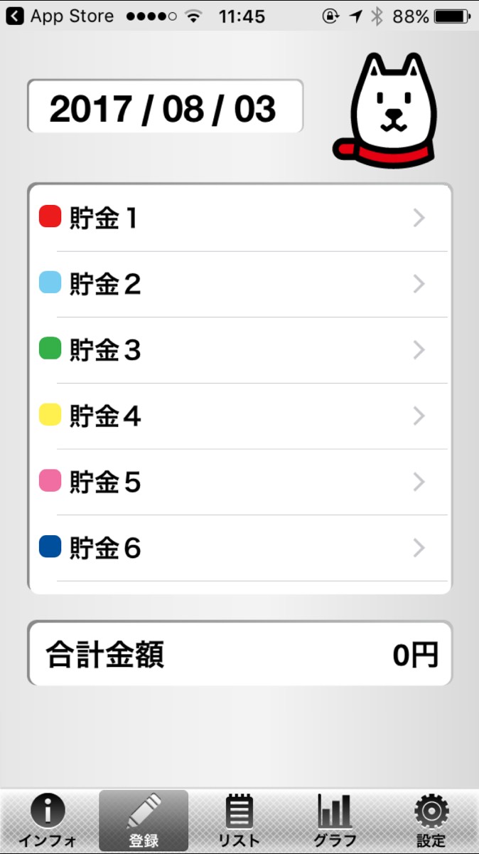 貯金管理ができるソフトバンク犬の便利なアプリ「お父さん貯金簿」