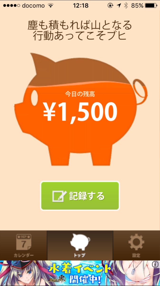 また、アプリを起動したときや金額を入力したときはブタさんが励ましの言葉をかけてくれます。
