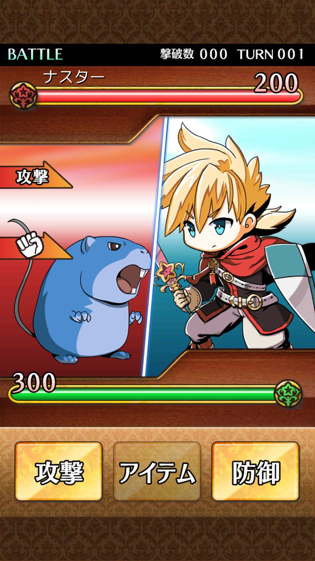 「攻撃」「防御」「アイテム」から行動コマンドを選びましょう。
