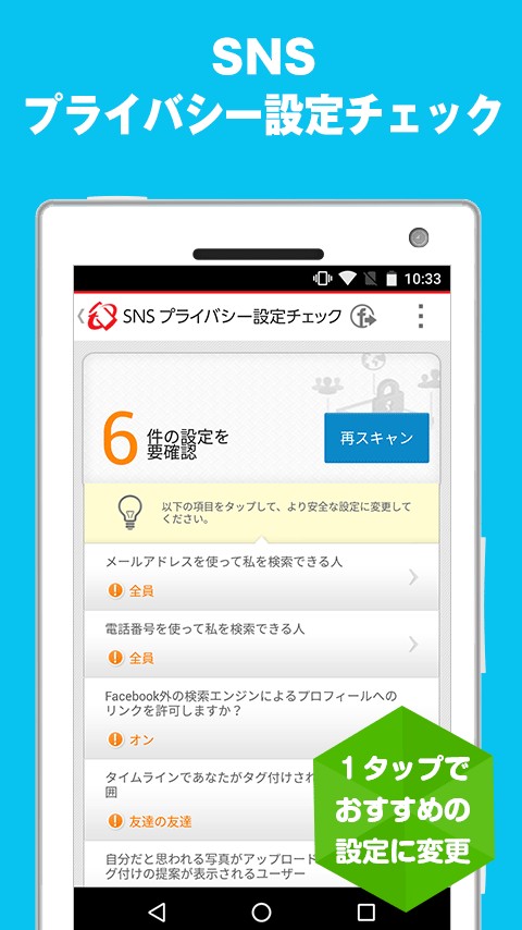 より安全に使えるよう設定や見直しポイントを教えてくれます。