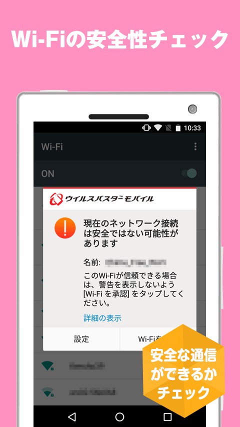 接続しようとしたWi-Fi が安全ではないと判断した場合には警告を出し、注意を促してくれます。